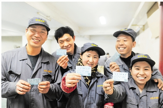 2015年1月15日,临安市的优秀农民工领到了免费返乡过年的火车票。