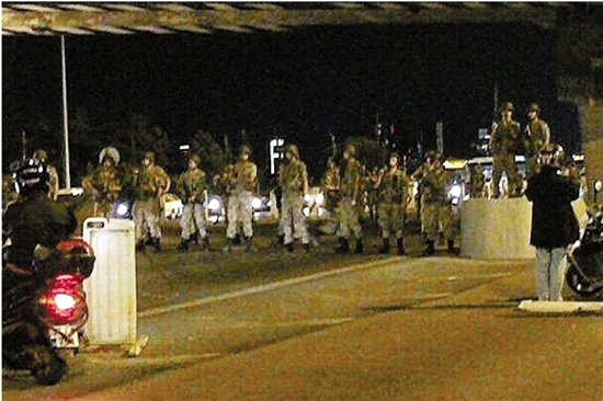 ①7月15日,在土耳其伊斯坦布尔,宪兵在博斯普鲁斯大桥上警戒。图片均据新华社