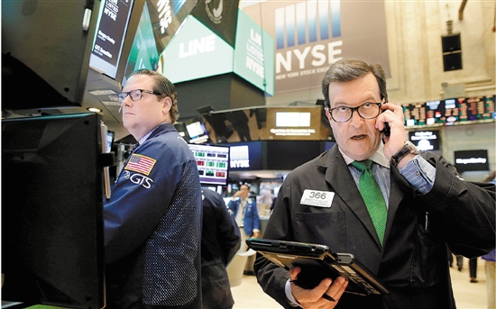 7月14日,交易员在美国纽约证券交易所交易大厅忙碌。纽约股市三大股指当日收涨,道琼斯和标普收盘再次刷新历史新高。 新华社发