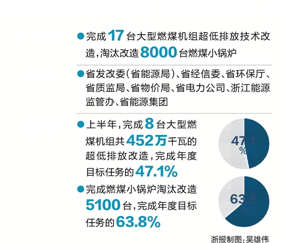●完成17台大型燃煤机组超低排放技术改造,淘汰改造8000台燃煤小锅炉