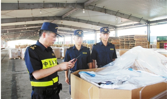 宁波海关查验关员使用移动查验作业系统进行查验
