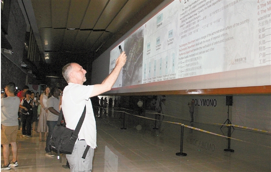 | “尚城1157·利星”商场日前揭开了其镇店之宝的面纱——3D版“清明上河图”。这是在传世名作《清明上河图》所描绘的北宋开封城盛况的基础上,融入南宋都城杭州“参差十万人家”的实景,并且化静态为动态、化平面为3D的一幅作品。它将古典艺术与现代科技接轨,吸引了来自法国、英国、韩国、日本、津巴布韦、巴基斯坦等多个国家的100位国际友人前来观摩。 通讯员 徐自成 摄 |