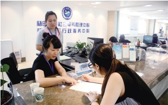 梧田街道行政服务中心为市民办理生育登记“同区通办”件