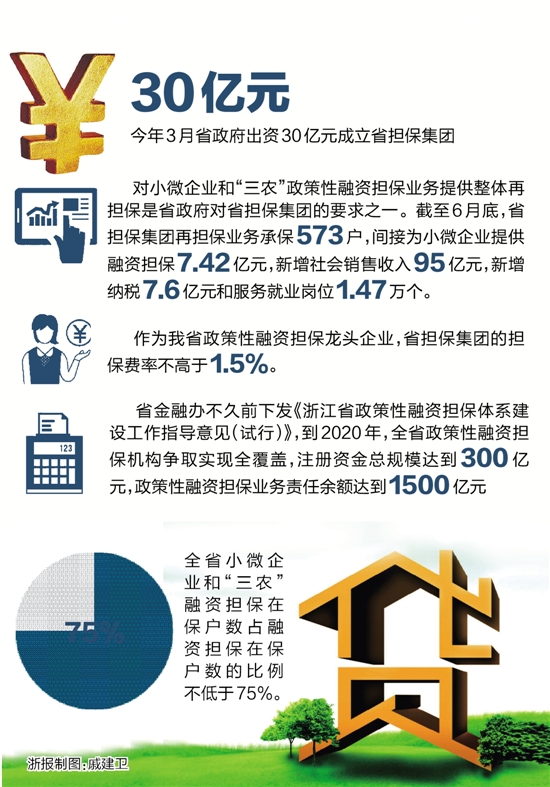 省金融办不久前下发《浙江省政策性融资担保体系建设工作指导意见(试行)》,到2020年,全省政策性融资担保机构争取实现全覆盖,注册资金总规模达到300亿元,政策性融资担保业务责任余额达到1500亿元