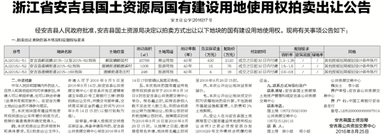 浙江省安吉县国土资源局国有建设用地使用权拍卖出让公告