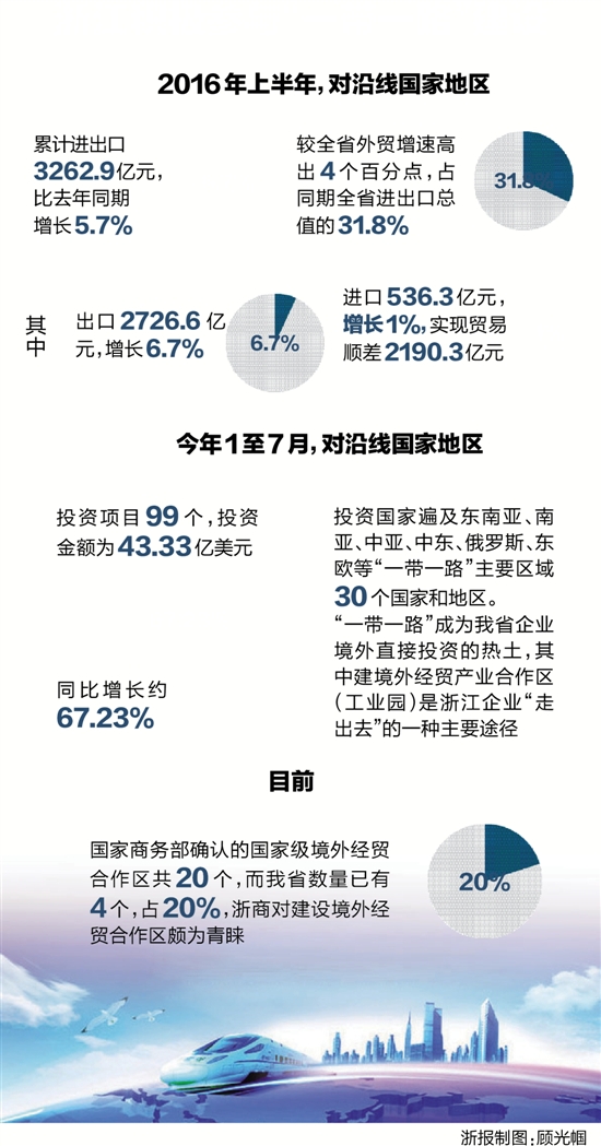 “一带一路”成为我省企业境外直接投资的热土,其中建境外经贸产业合作区(工业园)是浙江企业“走出去”的一种主要途径