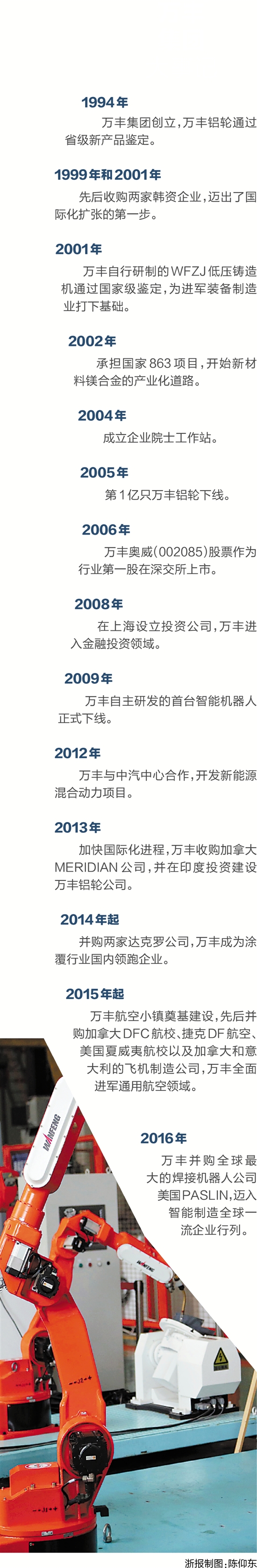 万丰并购全球最大的焊接机器人公司美国PASLIN,迈入智能制造全球一流企业行列。