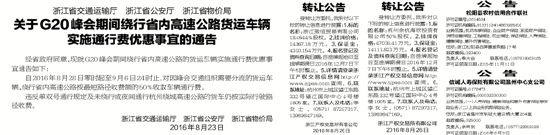 经省政府同意,现就G20峰会期间绕行省内高速公路的货运车辆实施通行费优惠事宜通告如下: