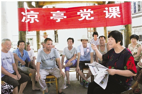 北仑区下邵社区党委把有些党课地点搬到各村凉亭等地,受到大家的欢迎。 吴晓鹏 邹洪珊 沈静萍 摄