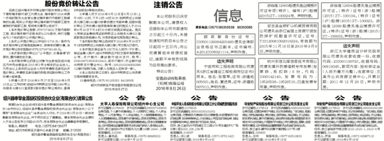 7.本次股份竞价转让活动定于2016年9月19日下午3时在柯桥区公共服务大楼三楼1号交易大厅进行。