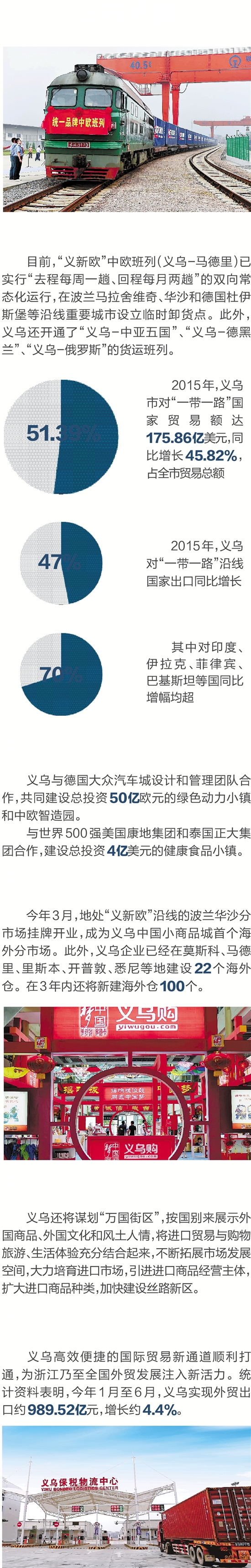 2015年,义乌市对“一带一路”国家贸易额达175.86亿美元,同比增长45.82%,占全市贸易总额