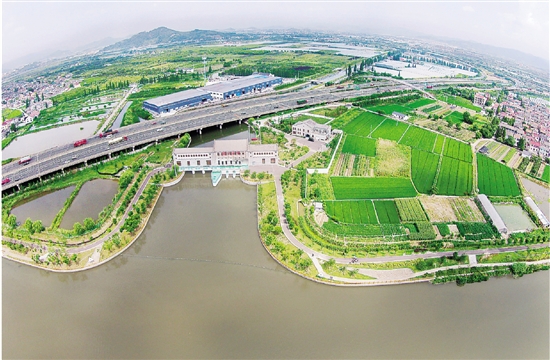 鸟瞰江北姚江干堤工程。 郭戟铠 贺元凯 摄