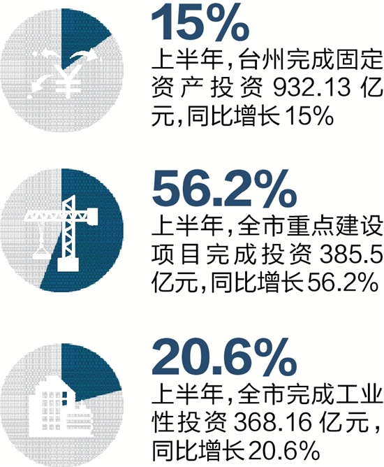上半年,台州完成固定资产投资932.13亿元,同比增长15%