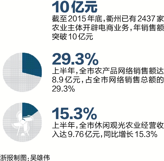 截至2015年底,衢州已有2437家农业主体开辟电商业务,年销售额突破10亿元