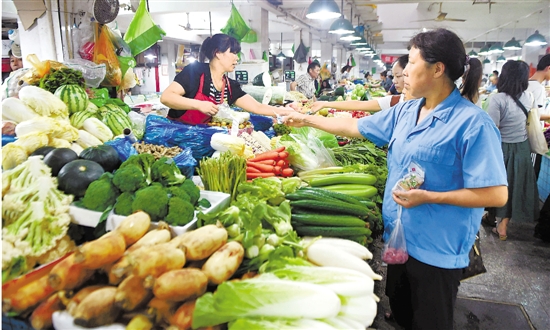 8月31日,杭州屏风街农贸市场,摊位上各类菜品摆得满满当当,价格平稳,市民安心选购。 本报记者 胡元勇 摄