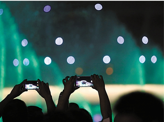 如梦如幻的钱江新城音乐喷泉引来众多市民、游客。
