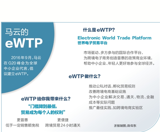 2016年9月,马云在G20峰会为全球中小企业代言,倡议建立eWTP。
