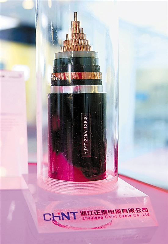 石墨烯技术产品摩托车用电池和阻水电缆。 本报记者 魏志阳 摄