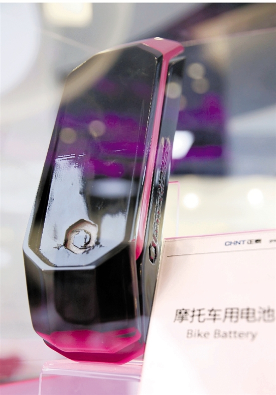 石墨烯技术产品摩托车用电池和阻水电缆。 本报记者 魏志阳 摄