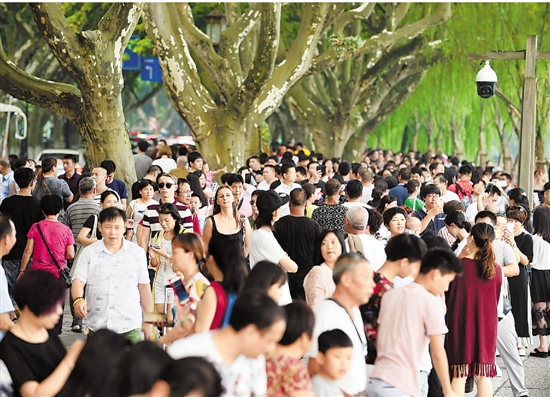 9月10日,G20杭州峰会结束后,大量游客涌入西湖景区。 本报记者 胡元勇 摄