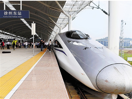 9月10日,首趟郑徐高铁动车组列车抵达徐州东站。 新华社发