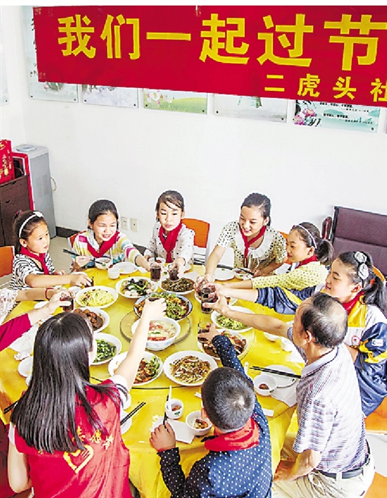 9月13日,新长兴人子弟学校——长兴蓝天学校的学生吃团圆饭。