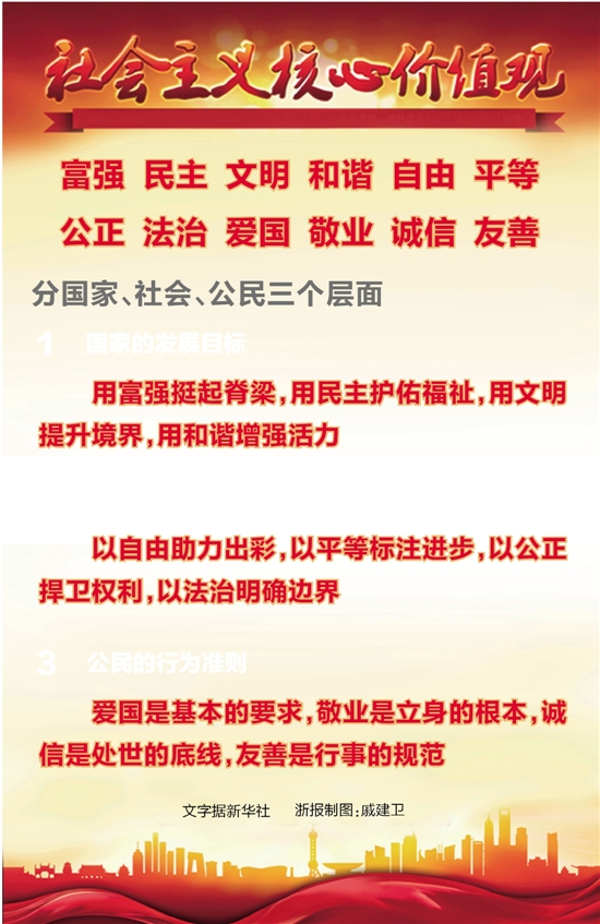 用富强挺起脊梁,用民主护佑福祉,用文明提升境界,用和谐增强活力