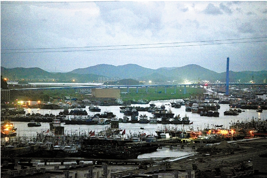 9月17日傍晚,大批渔船在舟山市沈家门渔港避风。 舟山日报记者 胡社友 摄