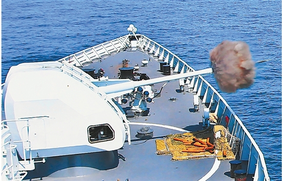 9月18日,广州舰主炮对海上目标实施精准打击。
