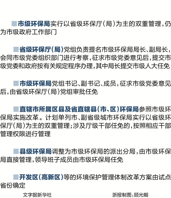■县级环保局调整为市级环保局的派出分局,由市级环保局直接管理,领导班子成员由市级环保局任免