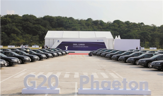 公司采购服务峰会的大众辉腾交车仪式