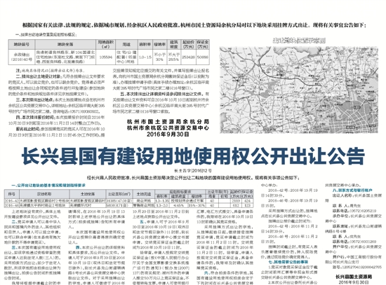 五、本次挂牌出让详细资料请参阅挂牌出让文件。有关挂牌出让文件资料可自2016年10月10日起到杭州市余杭区公共资源交易中心(余杭区临平南大街265号时代广场市民之家二楼)H16号窗口索取。