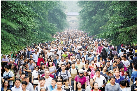 10月2日,游人在南京中山陵园风景区参观。 新华社发