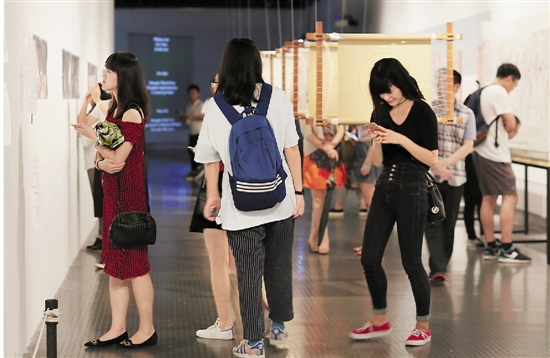 长假里,许多游客走进浙江美术馆,感受独特的杭州纤维艺术。