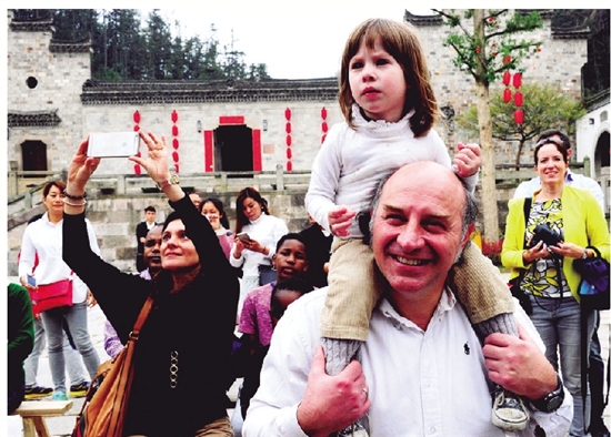 外国游客玩转武义 张建成 摄