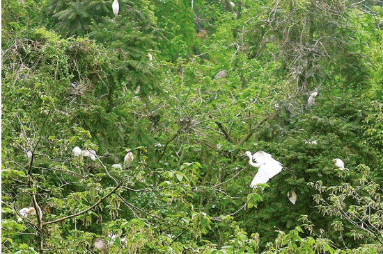 杭钢厂区内马岭山上的鹭鸟。