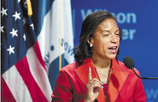 10月14日,在美国华盛顿的威尔逊中心,美国总统国家安全事务助理苏珊·赖斯就对古巴新政策发表讲话。 新华社发