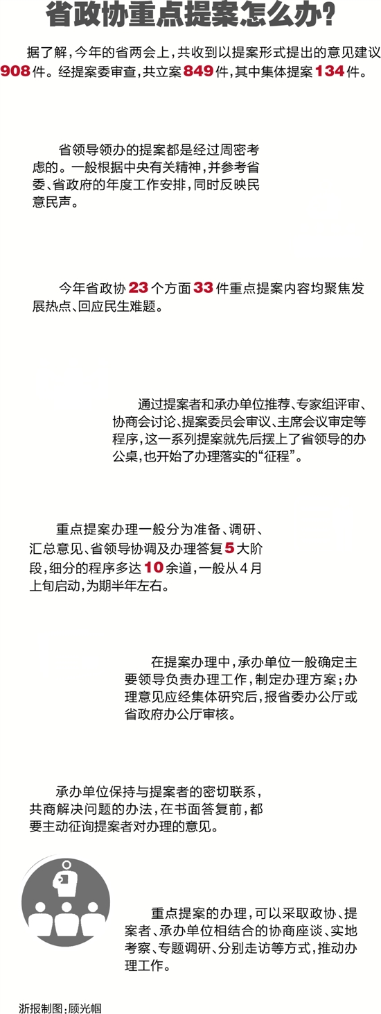 通过提案者和承办单位推荐、专家组评审、协商会讨论、提案委员会审议、主席会议审定等程序,这一系列提案就先后摆上了省领导的办公桌,也开始了办理落实的“征程”。