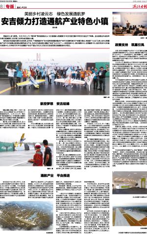 依托良好的地域环境和生态优势,近年来,“中国美丽乡村”安吉县将发展通用航空产业作为战略性新兴产业着力推动,特别是“十三五”以来,安吉已将通航产业作为全县重点发展的战略性新兴产业,为此全力建设国内通航产业的“五大中心”——研发制造中心、展示销售中心、运营服务中心、航空培训中心和融合发展中心,力争到2020年全县通航产业总产值达30亿元,把安吉打造成首批全国通航综合示范区。