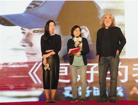 张纪中(右一)为《更好的我》导演刘影(中)颁奖。