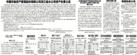 中国华融资产管理股份有限公司浙江省分公司资产处置公告