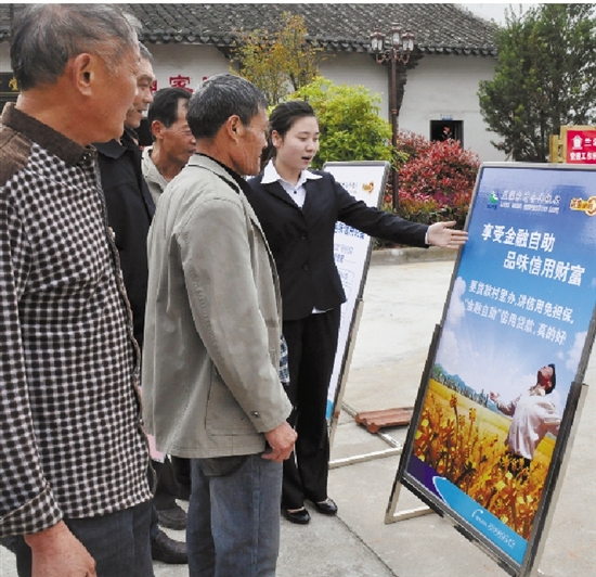 兰溪农合行工作人员向村民介绍普惠金融自助信用贷款相关知识。