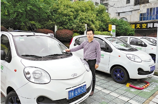 莲都区委组织部工作人员应俊正准备租电动汽车下乡。 吴立库 摄