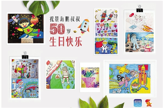 10月24日是航天员景海鹏的50岁生日。两天前,新华社联合全国少工委办公室面向海内外小朋友征集生日祝福,请孩子们为景海鹏画一份生日礼物。这是用精选的小朋友绘画作品制作的电子贺卡。 新华社发