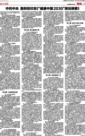 中共中央 国务院印发《“健康中国2030”规划纲要》
