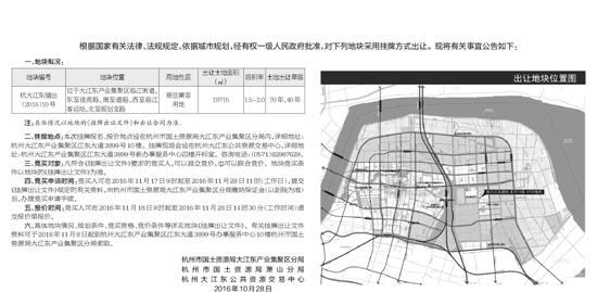 杭大江东储出﹝2016﹞10号国有建设用地使用权挂牌出让公告