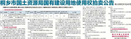 桐乡市国土资源局国有建设用地使用权拍卖公告