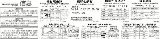 第2016127期中奖号码