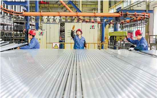 10月31日,位于长兴县李家巷镇的浙江博奥铝业有限公司,正在生产门窗、幕墙铝合金型材产品。今年,该公司已投入1000多万元用于科技研发,开发出三大系列产品,因其高隔热、高隔音等性能深受市场欢迎。前三季度,公司产值达4亿元,全年有望突破5亿元,实现全年红。 县委报道组 谭云俸 杨赟伟 摄 |