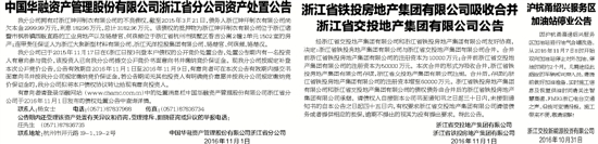 有意向者请登录华融网站 (www.chamc.com.cn)中的处置消息栏中国华融资产管理股份有限公司浙江省分公司于2016年11月1日发布的债权处置公告中查询详情。